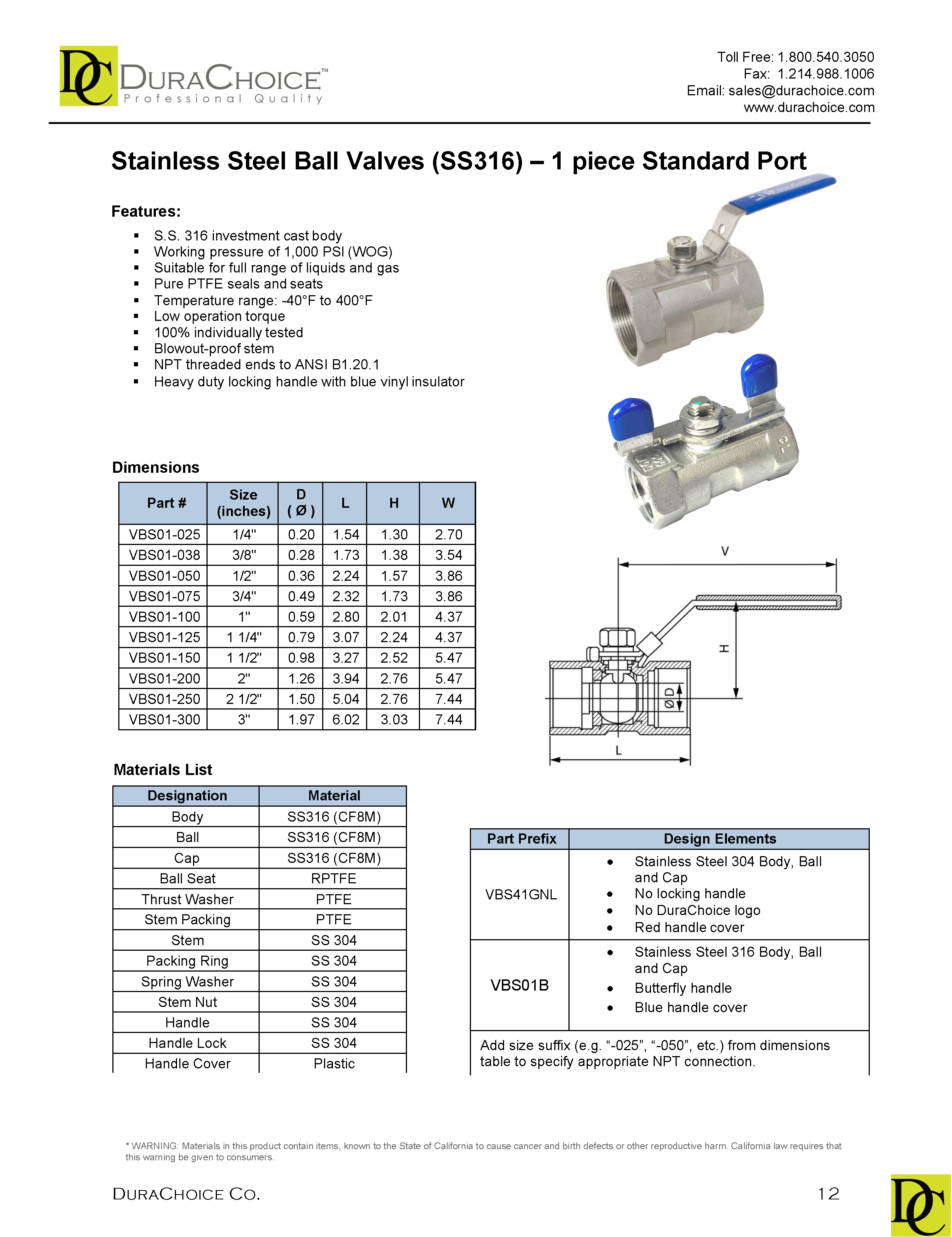 VALVE, BALL, MINI - 1.00IN, FULL, 316